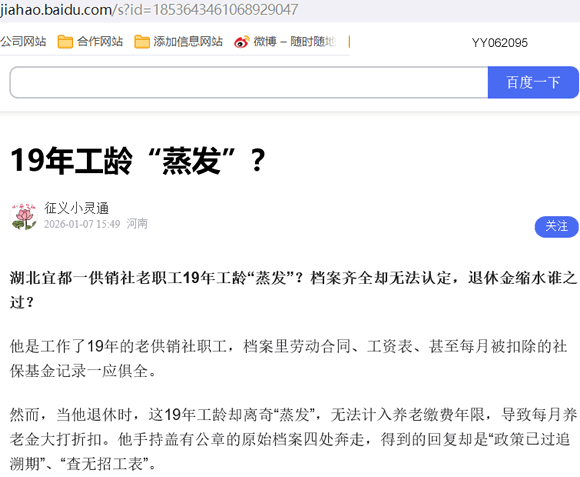 湖北宜都一供销社老职工19年工龄“蒸发”?档案齐全却无法认定,退休金缩水谁之过?