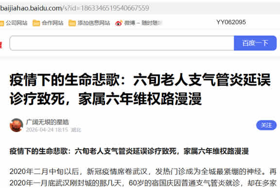疫情下的生命悲歌:六旬老人支气管炎延误诊疗致死,家属六年维权路漫漫